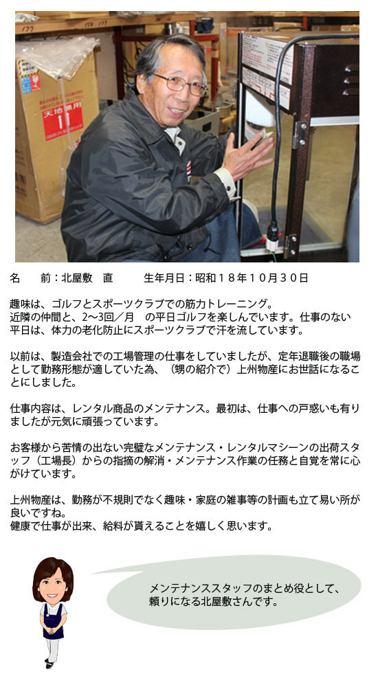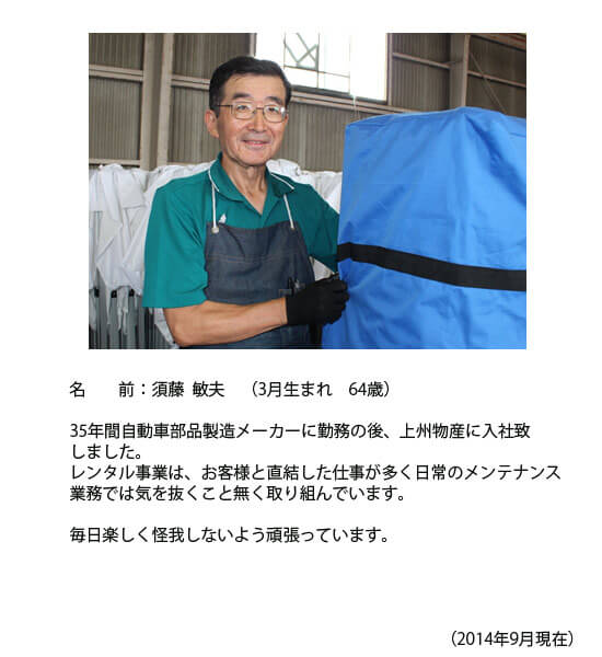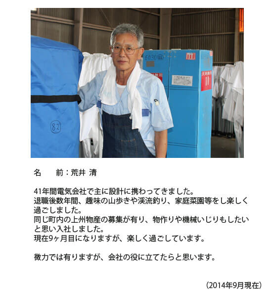 定年退職後の職場として、勤務形態が適していた為上州物産にお世話になることなり入社約1年です。