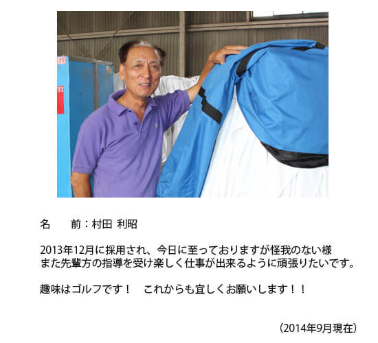2013年12月に採用され、今日に至っておりますが怪我のない様また先輩方の指導を受け楽しく仕事が出来るように頑張りたいです。
