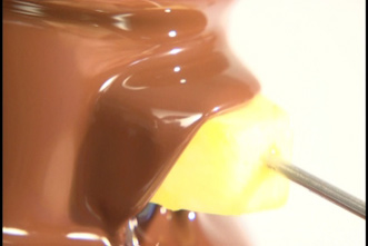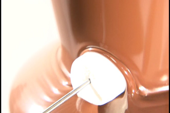 マシュマロやフルーツをつけて、チョコレートフォンデュを楽しめます。 |