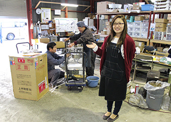 倉庫ではお客様からご返却頂いたレンタル商品の清掃も行っています。