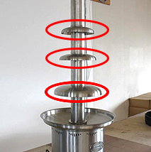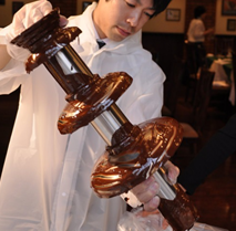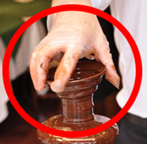 尚、噴水ベース等の部品が余熱を持っており、チョコレートで滑り易くなっている為、ヤケド・落下事故にご注意ください。