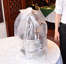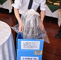 梱包作業をする際には使い捨て手袋をはめて頂き、洋服等に付かないように付属のカッパのご利用をお勧めいたします。